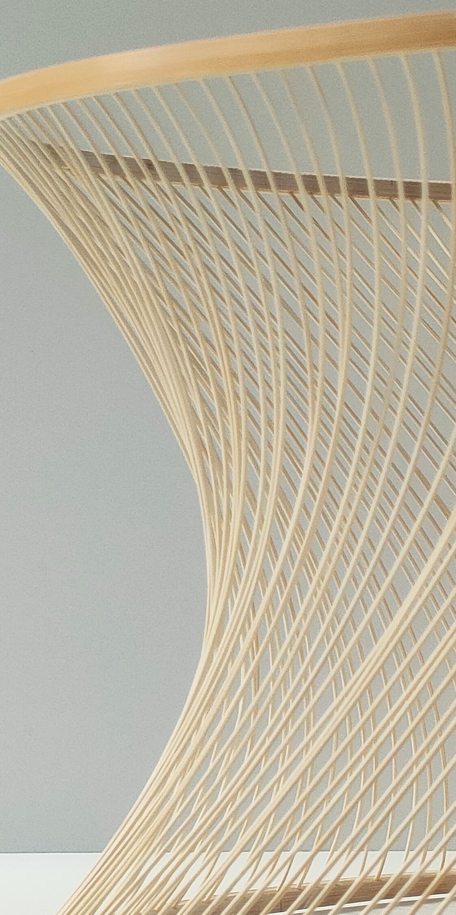 竹が本来持っている“しなり”だけに委ね、ゆっくりと曲げています。そのため、曲線は決して均一ではなく、場所によってわずかな揺らぎや個体差が生まれます。けれどそれは、自然が描いた線そのものです。